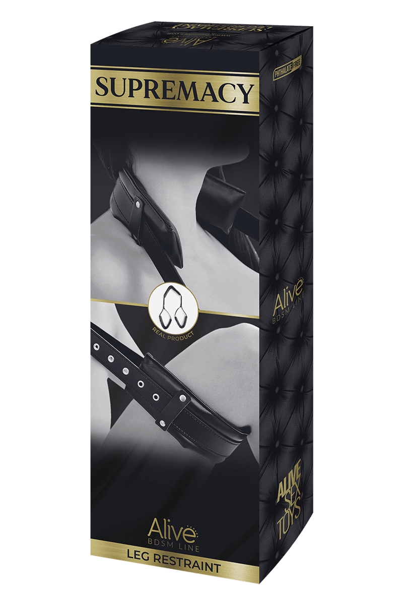 La marque Alive / collection BDSM Line propose la contrainte SM « Supremacy Leg Restraint », un système de harnais / sangle solide et qualitatif qui permet de rester en position jambes relevées sans effort.