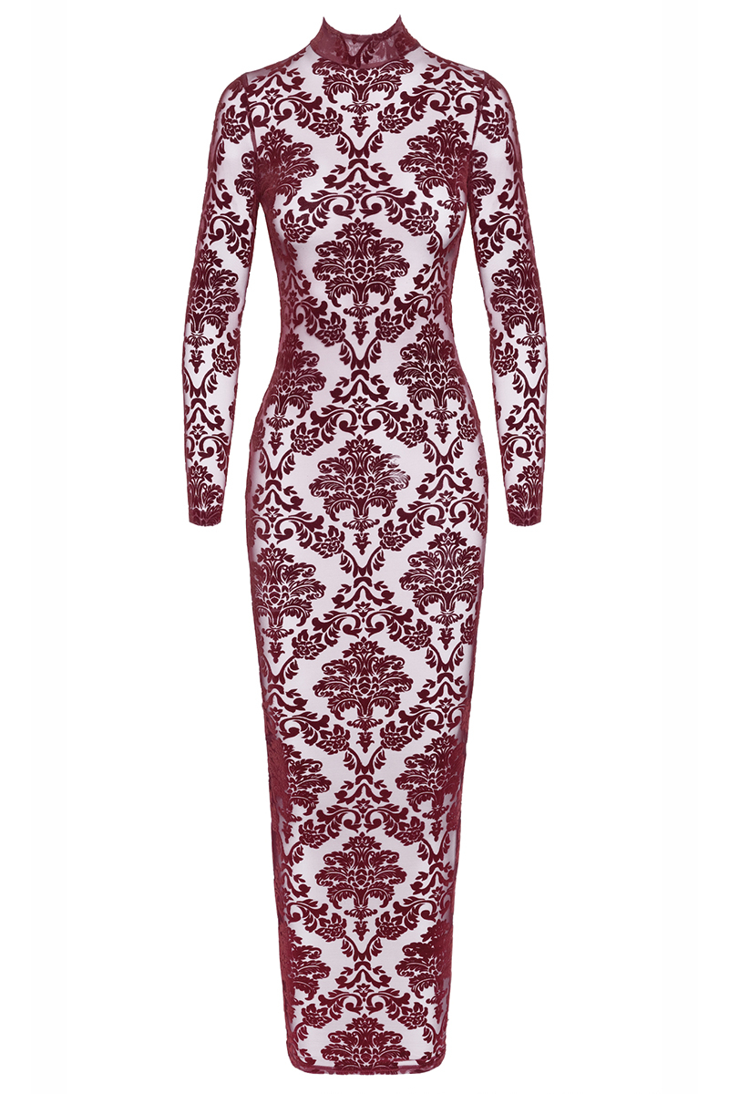 Testez votre pouvoir de séduction avec cette magnifique robe longue bordeaux transparente !